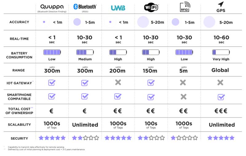 L’Intelligent Locating System di Quuppa ha una grande scalabilità e dispone di una API aperta, che semplifica l’integrazione con i sistemi attuali e futuri. Grazie alle sue funzionalità integrate di telemetria e monitoraggio, elimina la necessità di manutenzione attiva e minimizza i costi di ownership, in combinazione con le etichette di lunga durata e con la sua facilità di impiego.