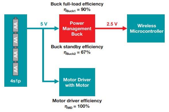 La gestione dell’alimentazione è necessaria per convertire la tensione della batteria nelle tensioni richieste da ciascuna sezione: microcontrollore wireless, driver del motore e altri sottosistemi. La gestione dell’alimentazione aggiunge costi, dimensioni e inefficienza al sistema. Pertanto, è importante progettare l’intero sistema tenendo presente le problematiche legate all’alimentazione: la gestione dell’alimentazione deve funzionare insieme a ciascun sottosistema.