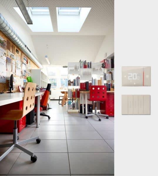 Nell’edificio di Via La Masa, BTicino ha installato un impianto connesso di ultima generazione, in grado di essere gestito in modo tradizionale, tramite App e grazie a comandi vocali (all’interno del VELUXlab sono infatti presenti i comandi digitali con assistente vocale Amazon Alexa integrato). Come estetica è stata scelta la linea Living Now, la serie civile, interamente prodotta in Italia, che unisce il meglio della tecnologia e del design.