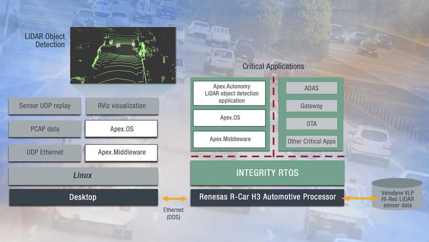 L’RTOS INTEGRITY conforme ad ASIL-D rappresenta la base per il framework Apex.OS compatibile con ROS 2 e destinato allo sviluppo dei sistemi di guida autonoma di prossima generazione.