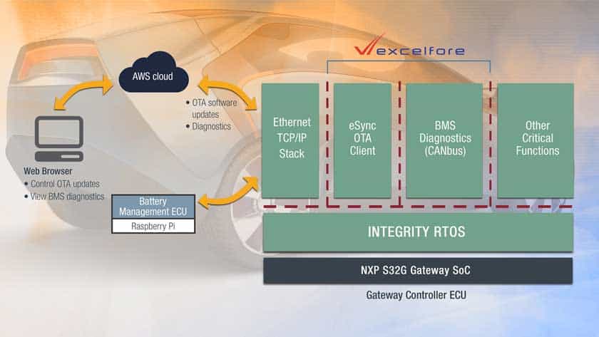 La piattaforma software OTA conforme a eSync di Excelfore è stata integrata e ottimizzata con il sistema operativo real-time sicuro e protetto INTEGRITY di Green Hills.
