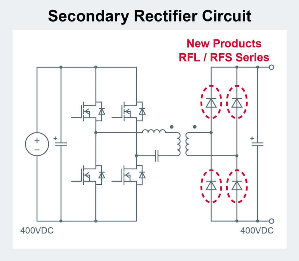 • Circuiti raddrizzatori secondari in stazioni di ricarica di veicoli elettrici e simili