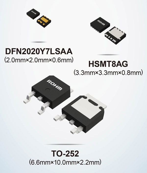 Invece per le applicazioni di potenza destinate al settore automotive è disponibile anche il package TO-252 (DPAK – 6,6 mm × 10,0 mm), ampiamente diffuso. Inoltre, ROHM ha ulteriormente migliorato l’affidabilità di montaggio ricorrendo alla tecnologia Wettable Flank per il package DFN2020Y7LSAA e a terminali ad ala di gabbiano per il package TO-252.