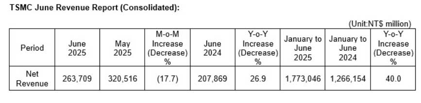 Sebbene la domanda di intelligenza artificiale e HPC sia rimasta stabile, il forte apprezzamento della valuta taiwanase rispetto al dollaro statunitense a giugno ha portato a una riduzione dei ricavi dalle esportazioni. Inoltre, le rettifiche delle scorte di fine trimestre hanno ulteriormente gravato sui ricavi mensili.