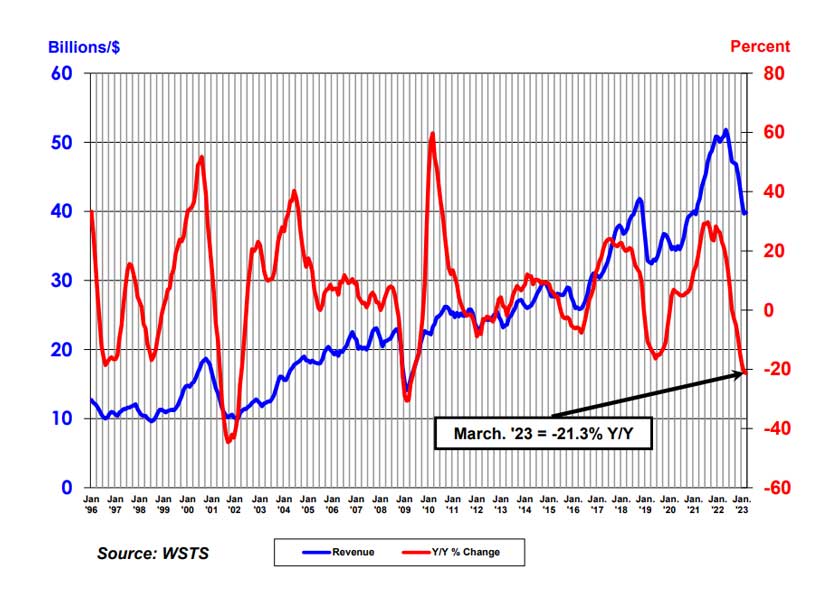 La Semiconductor Industry Association (SIA) ha annunciato oggi che le vendite mondiali di semiconduttori sono state pari a 119,5 miliardi di dollari nel primo trimestre del 2023, con un calo dell’8,7% rispetto al quarto trimestre del 2022 e del 21,3% rispetto al primo trimestre del 2022. Tuttavia le vendite del mese di marzo 2023 sono aumentate dello 0,3% rispetto a febbraio 2023. Le vendite mensili sono compilate dall’organizzazione World Semiconductor Trade Statistics (WSTS) e rappresentano una media mobile di tre mesi. SIA rappresenta il 99% dell’industria statunitense dei semiconduttori per fatturato e quasi i due terzi delle aziende di chip non statunitensi.“Le vendite di semiconduttori hanno continuato a diminuire durante il primo trimestre del 2023 a causa della ciclicità del mercato e dei venti contrari macroeconomici, ma le vendite mensili sono aumentate a marzo per la prima volta in quasi un anno, fornendo ottimismo per un rimbalzo nei mesi a venire, ha affermato John Neuffer, presidente e amministratore delegato di SIA.