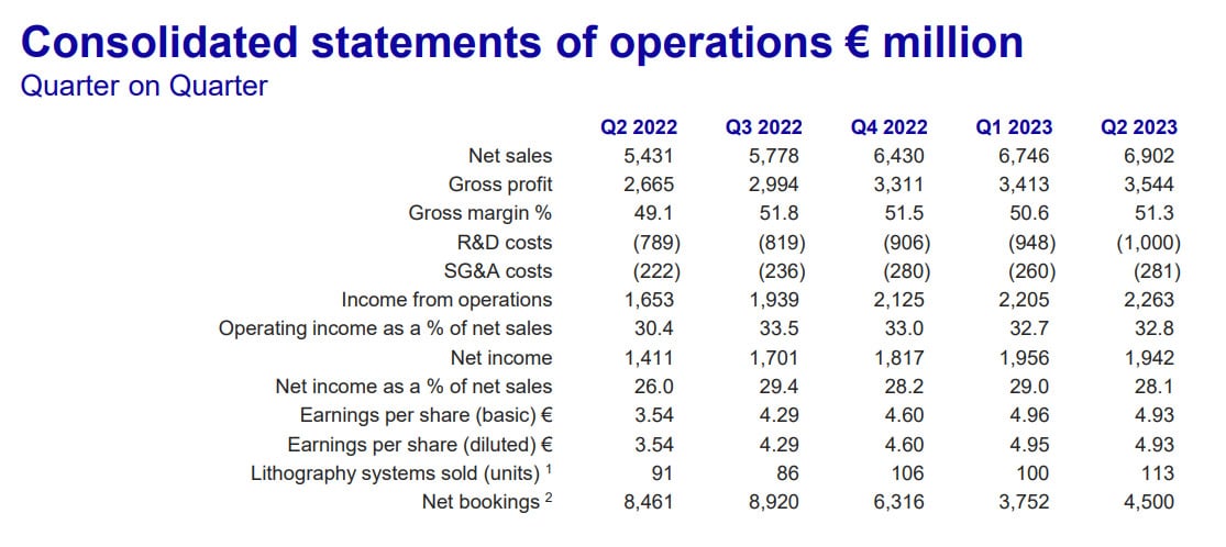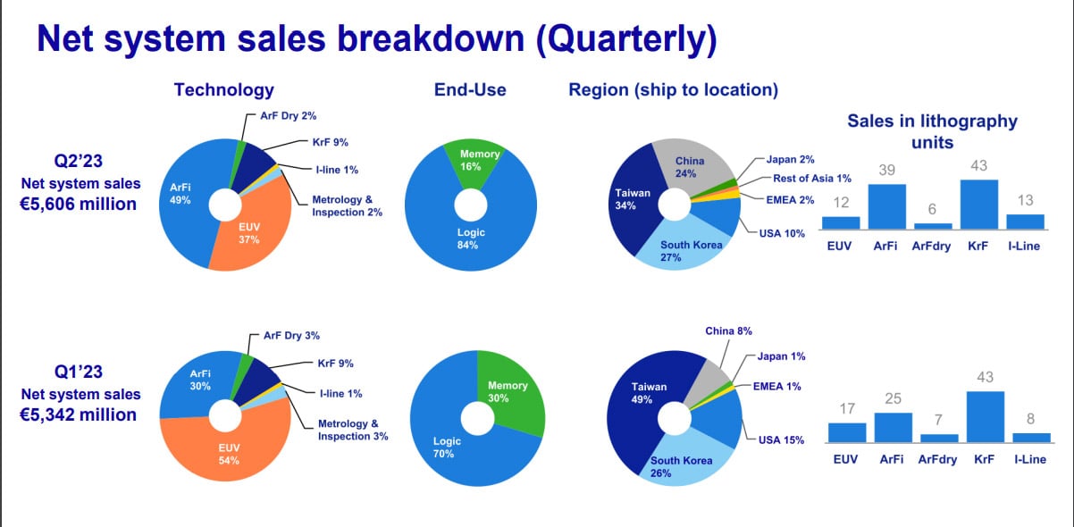 Complessivamente le macchine vendute nel periodo sono state 113 con un forte incremento degli scanner DUV ArFi passati dalle 25 unità del primo trimestre alle 39 unità del Q2 2023.