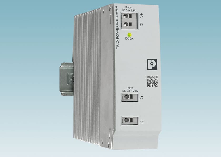 Il nuovo convertitore DC/DC della gamma prodotti Trio di Phoenix Contact alimenta l’impianto direttamente dal campo. L’affidabilità dell’alimentazione è garantita anche senza una rete centrale. Con un intervallo di tensione d’ingresso da 450 V DC a 1.650 V DC, il dispositivo è particolarmente adatto per tutti gli impianti fotovoltaici, ma può essere utilizzato anche in altri settori. Soddisfa la norma EN 62109 e garantisce un funzionamento sicuro dell’impianto.
