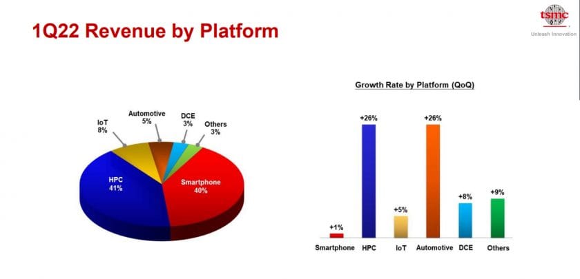 “La nostra attività del primo trimestre è stata supportata da una forte domanda relativa all’HPC e all’automotive“, ha affermato Wendell Huang, VP e Chief Financial Officer di TSMC. “Passando al secondo trimestre 2022, prevediamo che la nostra attività continuerà a essere supportata dalla domanda relativa a HPC e Automotive, parzialmente compensata dalla stagionalità degli smartphone“.