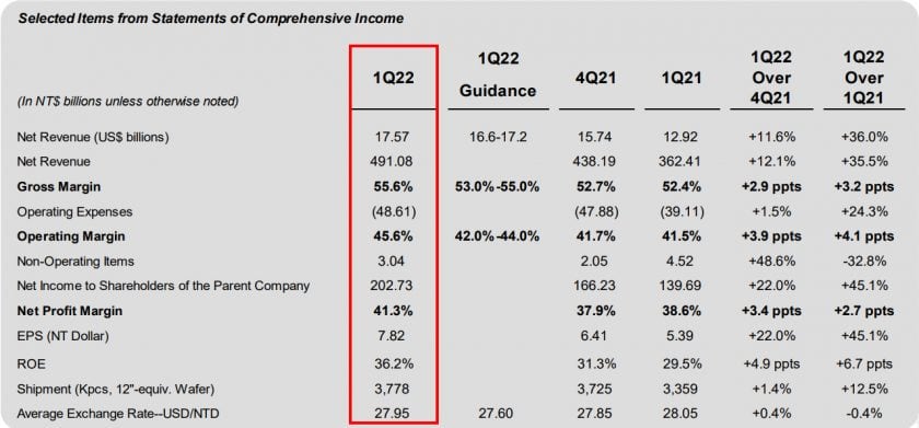 Anche la perdita di alcuni importanti clienti cinesi (in particolare HiSilicon) per effetto delle sanzioni degli Stati Uniti e il più recente embargo delle forniture verso la Russia, non hanno inciso sui ricavi di TSMC che continua a trarre beneficio dagli aumenti dei prezzi introdotti progressivamente durante il 2021.