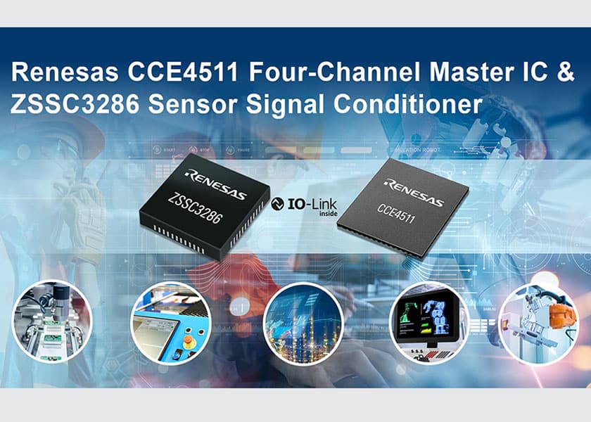 Renesas Electronics presenta oggi due proposte dedicate al mercato, in rapida crescita, delle applicazioni IO-Link: il dispositivo IO-Link master CCE4511 a quattro canali ed il dispositivo ZSSC3286 IO-Link ready sviluppato per il condizionamento del segnale di sensori resistivi a doppio canale.