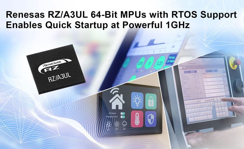 Renesas presenta i potenti MPU a 64 bit da 1GHz RZ/A3UL con supporto RTOS, HMI ad alta definizione e avvio rapido