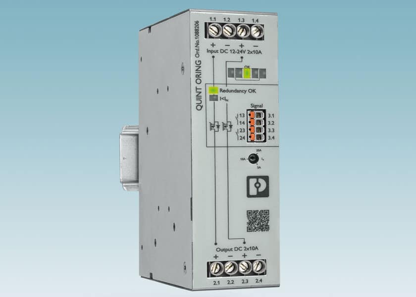 I nuovi moduli di ridondanza Quint Oring con tecnologia ACB di Phoenix Contact dispongono ora di una protezione dalle sovratensioni specifica per l’applicazione e di due uscite per un’elevata disponibilità dell’impianto.