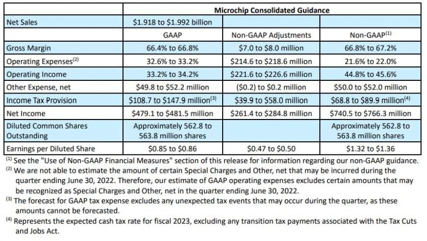 Per quanto riguarda il prossimo trimestre (Q1FY23), Microchip prevede i seguenti risultati: