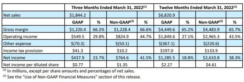 Grazie a questi risultati, l’anno fiscale terminato il 31 marzo 2022 si è chiuso con un fatturato record di 6,821 miliardi di dollari, in aumento del 25,4% rispetto al fatturato di 5,438 miliardi di dollari dell’anno precedente.