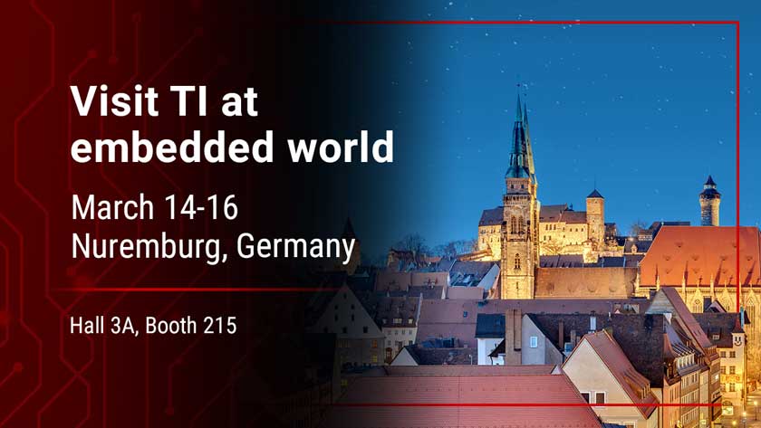 Ulteriori informazioni sulla partecipazione di Texas Instruments a embedded world 2023 (padiglione 3A, stand 215) sono disponibili alla pagina ti.com/ew.