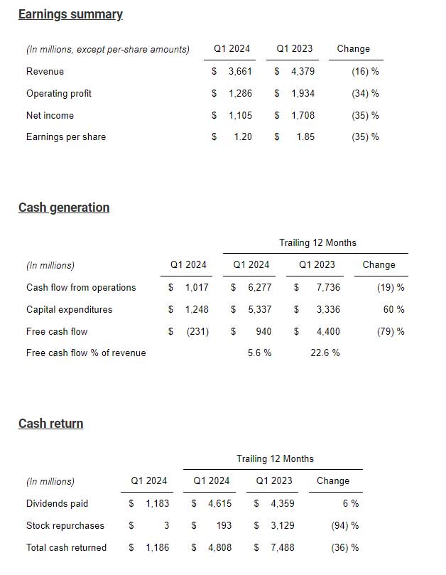 Da alcuni trimestri, la società ha ripreso ad investire pesantemente in impianti e macchinari tanto che nel trimestre le spese in conto capitale di 1,248 miliardi di dollari hanno mandato in rosso il free cash flow per 231 milioni di dollari.