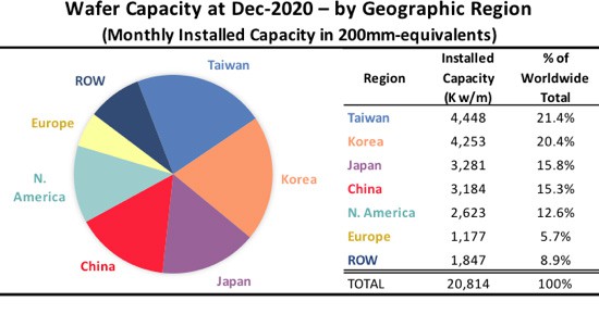 Anche in questo caso, tuttavia, i semiconduttori prodotti a Taiwan rappresentano il 21,4% dell’intera produzione mondiale di chip, e tutta l’area dell’Indo-Pacifico ricopre un ruolo di primaria importanza con la Corea del Sud al 20,4% e il Giappone al 15,8%.