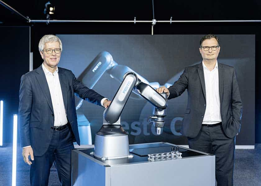 Il Festo Cobot pneumatico sarà più economico dei cobot elettrici della stessa classe. Fornirà un eccellente rapporto qualità-prezzo nella sua principale area di applicazione, la movimentazione di piccole parti con carichi utili fino a 3 kg. “Quando sarà in vendita nel 2023, Festo Cobot stabilirà nuovi standard nella collaborazione uomo-robot con la sua facilità d’uso”, spiega il dottor Frank Melzer, membro del consiglio di amministrazione per la gestione dei prodotti e della tecnologia di Festo.